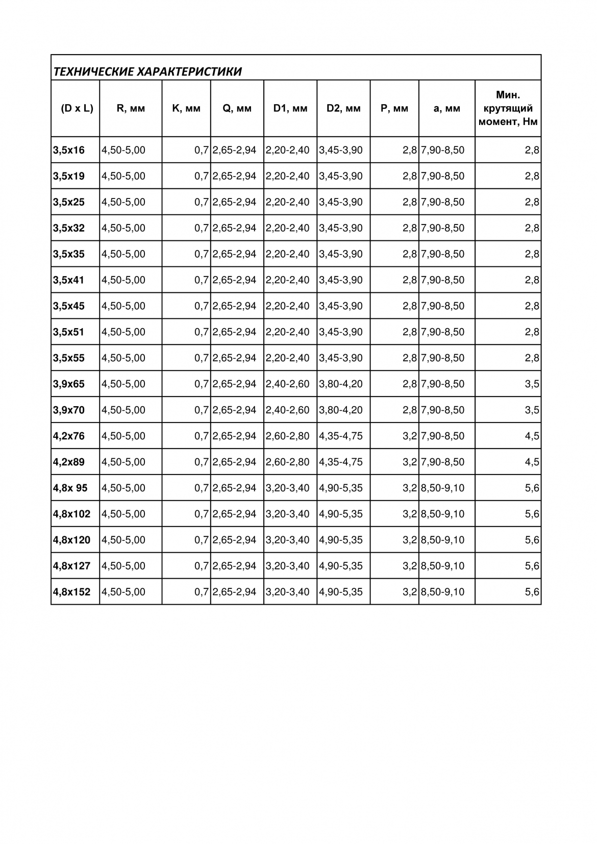 Потайная головка, крестообразный шлиц Philips № 2, острый наконечник с крупным шагом, оксидированные.